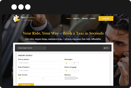 Get a complete taxi booking website with online reservation, payment, and route management — perfect for taxi companies and airport transfer services.